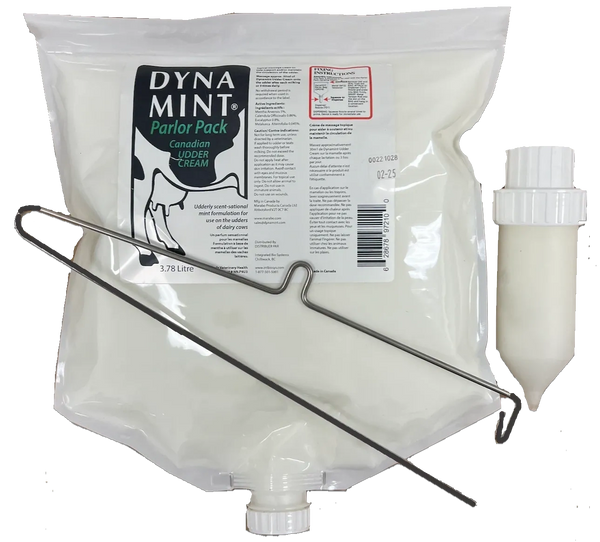 Try the unique Parlor Pack, hangs in the dairy parlour, unique self priming teat dispensing system makes applying udder cream, clean, simple and very quick.